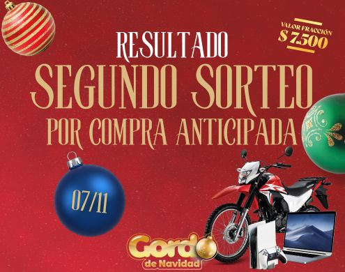 El 7 de Noviembre se realizó el SEGUNDO SORTEO por compra anticipada del GORDO DE NAVIDAD y los ganadores fueron: MOTO